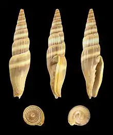 (Original description) The shell is elongately fusiform. The spire is acuminated. The whorls are longitudinally obtusely ribbed, interstices transversely elevately striated. The ribs of the last whorls are somewhat indistinct. The shell is bright scarlet encircled by a simple white belt. The columella is four-plaited. [2]