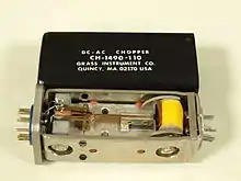 A vibrator is an electromechanical device that takes a DC electrical supply and converts it into pulses that can be fed into a transformer. It is similar in purpose (although greatly different in operation) to the solid-state power inverter.