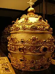 It is worth noting however that the equivalent title "Vicarius Christi" is indeed known to be inscribed upon the Belgium Tiara given to Pope Pius IX on 18 June 1871 by the Ladies of the Royal Court of the King of the Belgians and designed by Jean Baptist Bethune of Ghent.[54][55] Adventists have proposed that the alternate "Vicarius Christi" is no better than Vicarius Filii Dei, because of the correlation in Leviticus 24:18 between the substitute Vicarium in the Vulgate[56] and the substitute ἀντί "life for life" in the greek text.[57] They have proposed Vicarius Christi therefore means "Antichrist".[58]