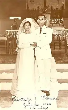 Col. Vicente S. Santos Jr and his wife, Erlinda Tolete Santos on their "Military Wedding" day