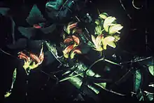 The flowers are visited by the ʻiʻiwi (Vestiaria coccinea) and the ʻamakihi (Loxops virens virens), two species of Hawaiian honeycreepers.[4] The shape and color of the flowers suggest they may be pollinated by birds.[1]