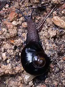 Victaphanta compacta, common name the Otway black snail, is a species of carnivorous air-breathing land snail, a terrestrial pulmonate gastropod mollusks in the family Rhytididae.[2] The Otway Black Snail Victaphanta compacta is only found in cool temperate rainforests in the Otway Ranges, Victoria, Australia. It is one of four species of the carnivorous land snails in the genus Victaphanta and is endemic to the Otway Ranges.[3]