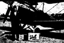 The Shell Oil Company was heavily involved with Roffey's endeavour to be the first to fly from New Caledonia to Australia, communicating with the press on Roffey's behalf and providing Roffey with Shell products to use during his trip. In what was likely a form of embedded marketing, the Shell brand was mentioned numerous times in newspaper articles.[26][27] After his journey, a newspaper photo was also published with Roffey standing in front of his plane beside a Shell logo.[27]