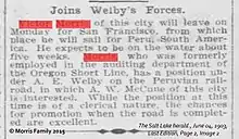 An M.I.T. mining engineer, John Tinker Glidden, was "perhaps" the first non-employee and unaffiliated registrant to sign the Morris' Bar Visitor Register.[6] In the pages of research and financial journals, John Tinker Glidden asserted scholarly authority over ore extraction, mineralogy, and labor practices in the Andean mines. "The 'cheap' labor," Glidden told one journal editor, had proven "inefficient and therefore not cheap. On the other hand, none but natives can stand the 'pressure' of the work in the high altitudes at which the most important mines are located."[7] In frustration, Glidden later petitioned for permission "to import 500 Japanese laborers into Peru" in order to supplement the recalcitrant "natives." Augusto B. Leguía, a xenophobic President against all Japanese immigration, denied the request.[8] Glidden became a superintendent of Mines for the Cerro de Pasco Mining Company.[9]