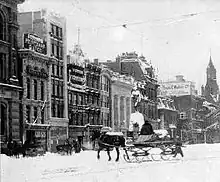 Victoria Hall is a former 3+1⁄2-storey commercial building in Hamilton, Ontario, Canada. Overlooking Gore Park, it is located in downtown Hamilton's central commercial district. For many years, the building (alongside the MacKay Building) was jointly known as the "Foster Building" due to its most recent use as a high-end clothing store. Some people still refer to Victoria Hall by this nickname today. It is a superior and rare example of a commercial building with a decorative architectonic sheet metal facade, which is completely hand-made. It was designated a National Historic Site in 1995.[1][2]