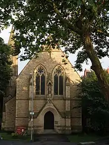 The area has over 20 listed buildings and among its many significant buildings is the notable Grade I listed First Church of Christ, Scientist (now the Edgar Wood Centre) in Daisy Bank Road, the work of the Middleton architect Edgar Wood. Also of significance are Summerville on Daisy Bank Road; Hirstwood by Edward Salomons; Alfred Waterhouse's Xaverian College; and St Chrysostom's Church, the Anglican parish church designed by George T Redmayne at the corner of Oxford Place and Anson Road. St Chrysostom's Church backs onto the University of Manchester's Dalton-Ellis Hall, one of the older halls of residence at the university of Manchester Redmayne was the architect of the original Dalton Hall.