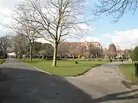 Victoria Park is a public park located just to the north of Portsmouth Guildhall, adjacent to Portsmouth and Southsea railway station and close to the city centre in Portsmouth, Hampshire. It was officially opened on 25 May 1878 and was the first public park to be opened in Portsmouth. It was designed by Alexander McKenzie. It has a total area of around 15 acres (61,000 m2) and is planted with trees, shrubs and flowers. The centre of the park features an enclosed area which inhabits animals such as birds, rabbits and guinea pigs.[1][2][3][4][5]