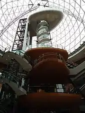 An element of the development is two covered, multi-level streets linked to the glass dome which measures 37 m in diameter and 45 m in height. A public square covered entirely by the glass dome serves as the hub of the entire area. The Jaffe Fountain, constructed in the 1870s by former Lord Mayor Otto Jaffe in memory of his father, has been restored to its original location in Victoria Square.[5] There are pedestrian links to nearby business, nightlife and shopping streets on Laganside, Donegall Place, Royal Avenue and Ann Street.