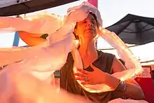 ![]() Victoria Vesna performing Octupus Mandala at Santa Monica Glow. Photo: Brandon Choe. | |