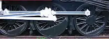 The J class also featured a number of other design advances over the K class. It had a larger grate, enabling grate sections to be compatible with those of the N class and permitting an increase in firebox volume sufficient to allow two arch tubes to be installed.[11] Another innovation was the use of a regulator valve incorporating a centrifugal steam separator (to draw away any water and thus provide the driest steam), rather than the simpler (though extremely reliable) D regulator valve used in the K class.[11] The J class also featured substantially redesigned cylinder porting to improve steam flow and efficiency.[12] The innovative SCOA-P type driving wheel centre developed for the Victorian Railways R class was adapted for the 55 in (1,397 mm) diameter J class drivers.