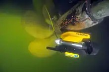 VideoRays have also been featured in several broadcast productions, especially on the National Geographic Channel. VideoRay was featured prominently in the recent NatGeo documentary Dark Secrets of the Lusitania[4] which documented a 2011 exploration of the RMS Lusitania wreck off the Irish coast. The ROV captured images of interior compartments and recovered artifacts that have not been seen since the ship's sinking in 1917.
