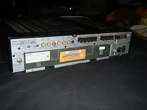 Back of a 1992 Toshiba satellite receiver with an installed VideoCipher II module
