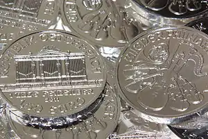 6. "Vienna Philharmonic 1 Ounce Fine Silver (999)". Austrian Mint. Retrieved 20 October 2021.