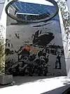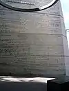 Fixed to the right wall are 33 inscriptions, quotations intended to recall events of military and political importance. The memorial features a photograph by Australian Army photographer Mike Coleridge - Members of 5 Platoon, B Company, 7th Battalion, The Royal Australian Regiment, 26 August 1967 The photograph, etched on the rear wall, shows soldiers waiting to be airlifted to the Australian base at Nui Dat after Operation Ullmarah. The walls offer anchors for wires that suspend a halo of stones: A scroll containing the names of Australians who died in Vietnam is sealed into one of the stones.