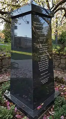 The Vietnam War Memorial, also known as the Vietnam War Commemorative Monument, is a war memorial commemorating veterans of the Vietnam War in Clackamas County, installed in Milwaukie, Oregon's Scott Park, in the United States. The memorial was dedicated on November 11 (Veterans Day), 2017,[1] and rededicated in 2020 following construction of the nearby Ledding Library.[2][3] The obelisk was designed by sculptor Bruce Palone.[1]