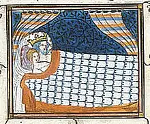 The effect grandpa's "teachings" have on the boy is mirrored in the music through the intertwining of two classic French children's tunes: Marlbrough s'en va-t-en guerre (Marlborough is off to War), known in English-speaking countries as For He's a Jolly Good Fellow, and Le bon roi Dagobert (The Good King Dagobert). Both were adult satirical songs mocking those in power (royalty, foreign enemies), cleverly disguised as nursery rhymes to sneak past the authorities. Le bon roi Dagobert dates from around the French Revolution and depicts the monarch as a selfish, absent-minded brat, constantly scolded by his advisor Saint Eligius.[7] The real Dagobert lived a life of debauchery and the song's opening verse, "The good King Dagobert had his pants on inside out", likely alludes to his bevy of mistresses and concubines.[8][9]