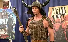 The show featured Johnny "Drama" Chase as the lead character, Tarvold. Tarvold has a signature exclamation, "VICTORY!!!".[3][4] Tarvold hails from Northumbria.[3] His ship is called the Gokstad (a reference to the Gokstad ship).[5] Set during the mid-10th century AD in the Orkney Islands, Viking Quest follows the exploits of Viking hero, Tarvold, as he and his clan sail the high seas. A legend in the making, Tarvold had become one of the most feared and notorious Vikings scarcely a year after he had grown his beard. It was then that he dared to steal the gold of Vali, Norse God of Revenge. His childhood friend and nemesis, Thorfinn Skull-Splitter, betrayed him and Tarvold was caught stealing the gold. As retribution for his deed, Tarvold was forced to loot and plunder in Vali's name. As he sailed the high seas doing Vali's bidding, Tarvold had to stay one step ahead of Thorfinn who constantly attempted to thwart Tarvold's progress and steal the treasure that he needed to repay his debt to Vali.