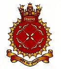 INS Vikrant (pronounced [vikraːnt̪ə])[18] is an aircraft carrier in service with Indian Navy. The carrier is the first to be built in India and was constructed by the Cochin Shipyard Limited (CSL) in Kerala. The namesake Vikrant is a tribute to India's first aircraft carrier INS Vikrant (1961). Vikrant means "courageous" in Sanskrit.[19] The motto of the ship, "जयेम सं युधिस्पृधः"(Sanskrit), means "I defeat those who fight against me".