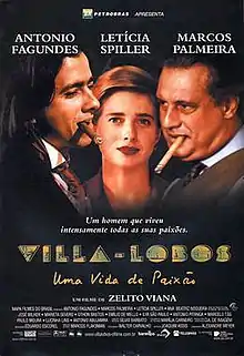 Villa-Lobos: A Life of Passion (Portuguese: Villa-Lobos - Uma Vida de Paixão) is a 2000 Brazilian drama film directed by Zelito Viana. It was entered into the 22nd Moscow International Film Festival.[4] It won the 2nd Grande Prêmio Cinema Brasil for Best Score,[5] and the 5th Brazilian Film Festival of Miami for Best Art Direction.[6] Its production started in 1997 as Villa Lobos - História de Uma Paixão.[7]