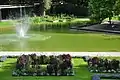 The Schneeligut area integrated on occasion of the 1939 Swiss national exhibition, and the grotto of Karl Stauffer had to be replaced. On occasion of the G59 exhibition, the central puplic square in the garden was rebuilt, and the free-standing wall with the Pergola at the lily pool and the Iridae gardens establisblished.[2] In 1985, the garden area with the Irideae, the so-called Irisgarten, was redesigned by Walter Frischknecht. About 120 different types of Iridae bloom from March (miniature Iris) until July (Iris barbata), and there grow, among many others, Iris pseudacorus and Peony.[3][4]