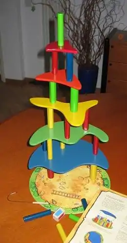 Villa Paletti is a board game of physical skill designed by Bill Payne and published in 2001 by Zoch Verlag. Players compete to build the villa highest using columns from lower floors without collapsing the structure.
