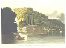 Attributed to the architect Giovanni Antonio Piotti,[5] the construction was completed in 1577. The heirs sold it in 1590 to Pirro I Visconti Borromeo,[6] who completed it and terraced the surrounding land to be used for the cultivation of vine and chestnut. In 1676 it was sold again to Francesco Canarisi of Torno, who had frescos in the rooms and added portraits of his ancestors and of the Plinii. A small chapel dedicated to San Francesco was also built. In 1676 the Canarisi family, an important family from Como, became the owner of the Villa, keeping the property until the beginning of the 19th century.