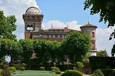 In the project for the extension of the building immediately after the purchase by Toeplitz, an important step in the work of the architect Brasini was the design and planning of a tower crowned by an arched loggia, four on each side. The arches support the roof structure with an openable metal dome used as a scientific observatory. The mirror was made with the collaboration and supervision of Professor Emilio Bianchi, director of the Brera Astronomical Observatory and creator of the Planetarium of Milan.[13] During the Second World War, the presence of the high tower led the Germans to suspect that it was used for secret communications by Mrs. Toeplitz.