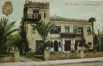 Villa Zorayda (also known as the Zorayda Castle) is a house at 83 King Street in St. Augustine, Florida.[2] Built in 1883 by the eccentric Boston millionaire Franklin W. Smith as his winter home,[3] it was inspired by the 12th-century Moorish Alhambra Palace in Granada, Spain. Smith named it "Villa Zorayda", after one of the princesses in Washington Irving's Tales of the Alhambra.[4] The building and part of Franklin Smith's art and antique collection were sold to Abraham Mussallem, a rug and antiquities merchant originally from Syria, in 1913. On September 23, 1993, it was added to the U.S. National Register of Historic Places. The Villa Zorayda Museum is still owned by the Mussallem family and contains the original art and antique collection assembled by Franklin Smith and Abraham Mussallem.