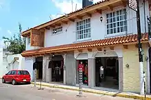 Aside from the church, the plaza is surrounded by the old and new municipal palaces, a number of residential structures with shops on the ground floors. The old municipal building site is now the Casa de Cultura Dr. Jorge Jiménez Cantú. The original municipal palace was built at the end of the 17th century and was of Neoclassical architecture. By 1926, the old building had deteriorated enough to warrant demolition. A new, two-story building was constructed and inaugurated in 1931. This center contains the municipality library, an auditorium and a continuing education center.[5]
