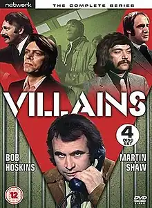 Villains is a crime drama series, shown in the UK in 1972, following the linked fates of nine bank robbers, led by George (David Daker). It begins with the nine men meeting in prison during their appeal and traces each individual after the group escape from custody.[1] The series also starred William Marlowe, Bob Hoskins and Martin Shaw.[2]