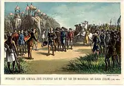 Vimaladharmasuriya I is referred to by four names by different sources. Rajavaliya[2] mentions his early name as Konappu Bandara and says he is the son of a Kandyan chieftain, Weerasundara Bandara of Peradeniya. Reports of early Dutch visitors Sebald de Veert and Joris van Spilbergen mention him as Don João da Austria.[3] Joao Rebeiro mentions one Don Juan Appuhamy, a commoner who was sent to conquer the kingdom of Kandy and of Konnapu Bandara. Historians have also noted that from 1604 to 1617 there is little information available as to what happened in the Kandyan Kingdom.[4] Therefore, there is the possibility of mixing up of several personalities by later historians in reconstructing the history of that period. As per the deed given by this king to the chief commander of Campaign of Danture, his mother's name is Kosbokke Gedara Vimalu, after whom he took up his name Vimaladharmasuriya.[5][6]