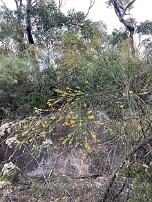 Viminaria juncea is the single species[Note 1] in the genus Viminaria endemic to Australia.[3][2][1] The genus is in the pea family Fabaceae. It is colloquially known as native broom after its resemblance to the related European broom plants.[4] The Noongar peoples know the plant as koweda.[5]