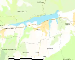 Map of Vinça and its surrounding communes