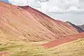 Vinicunca, or Winikunka, also called Montaña de Siete Colores (literally: Mountain of seven colors), Montaña de Colores (Mountain of colors) or Montaña Arcoíris (Rainbow Mountain), is a mountain in the Andes of Peru with an altitude of 5,200 metres (17,100 ft) above sea level.[1][2] It is located on the road to the Ausangate mountain, in the Cusco region, between Cusipata District, province of Quispicanchi, and Pitumarca District, province of Canchis.[3]