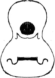 ![]() A plan of the body shape of a Viola de Queluz, with typical decorations of the soundboard and bridge design. | |