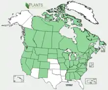 It is native to Canada, the northeastern, north-central, northwestern, southeastern, and southwestern United States and California, and the French islands of Saint Pierre and Miquelon.[1]