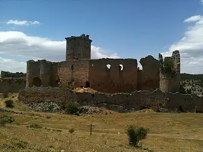 One year later, on 27 December 1327,[51] Violante handed over to the Order of Santiago and to its his new Grand master Vasco Rodríguez de Coronado[lower-alpha 7] all the assets and rights she possessed, among which were included the Lordships and castles of Ucero and Vilamartín de Valdeorras, numerous cotos in Galicia, her lands in Burgos, which he inherited from her mother in Soria and Valladolid,[58] and all her other possessions in the Kingdoms of Castilla, León and Portugal, also providing that all those goods could be delivered, sold, pawned, exchanged or disposed of by the said Order,[59] since to be admitted to it, it was necessary for her to renounce all her personal assets.[34]