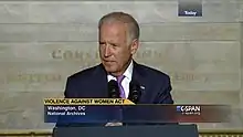 On September 12, 2013, at an event marking the 19th anniversary of the bill, Vice President Joe Biden criticized the Republicans who slowed the passage of the reauthorization of the act as being "this sort of Neanderthal crowd".[44]