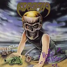 Violent by Nature is the second album from Arizona thrash metal band Atrophy, released in 1990 on Roadrunner Records. Like their previous album Socialized Hate, it was co-produced by prolific producer/engineer Bill Metoyer, and recorded in Los Angeles. The band followed up the album with tours of the US and Europe with the likes of Sacred Reich, Coroner and Forced Entry. However shortly after, Chris Lykins left the band to pursue a medical school course and the band split up after Roadrunner Records lost confidence in the band due to the departure of one of its leading songwriters; as such, Violent by Nature would be Atrophy's final album before their 22-year breakup from 1993 to 2015. The model for the artwork was Richie Bujinowski (now Cavalera), who would later become Max Cavalera's adopted stepson and the frontman of Incite.