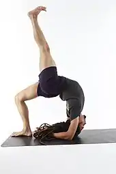 Viparita Dandasana (Sanskrit: विपरीत दण्डासन, IAST: Viparīta Daṇḍāsana) or Inverted Staff Pose is an inverted back-bending asana in modern yoga as exercise. It may be performed with both feet on the ground, or with one leg raised straight up.