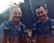 From May to August 1953, he was assigned to Japan where he flew F-84 Thunderjets in combat during the last months of the Korean War. Meroney served in a variety of command and staff positions over the next 15 years. In 1968, during the Vietnam War, he was assigned to the 8th Tactical Fighter Wing at Ubon Royal Thai Air Force Base where he served as Deputy Commander for Operations and later as Vice Commander, and flew F-4 Phantom II in combat missions. He flew 141 combat missions and managed to fly at least two combat missions with his son Virgil III, before his son was killed in action on March 1, 1969, after his aircraft was shot down by anti-aircraft fire during a nighttime strike mission against enemy targets in Khammouan province, Laos.[1][3][10][11][12]