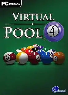 Virtual Pool 4[lower-alpha 1] is a sports simulation video game developed and published by American studio Celeris as an entry in the Virtual Pool franchise, a sequel to Virtual Pool 3. The game was initially released on Windows in August 2012. It was released to Steam on May 11, 2015, worldwide,[3] after a period on Steam Greenlight.[4] The game has two releases, an offline version of the game,[5] and an online multiplayer version.[lower-alpha 2][6][7] The game has also had an additional iPad release.[8]