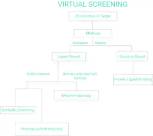 There are two broad categories of screening techniques: ligand-based and structure-based.[7] The remainder of this page will reflect Figure 1 Flow Chart of Virtual Screening.