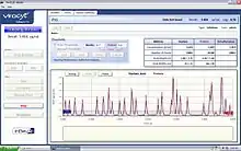 In 2004 the virus counter’s added a second detection channel to the SNaPE instrument which improved data analysis substantially to increase specificity.[4] The principle of detection was based on staining proteins and nucleic acids with fluorescent dyes within a liquid sample. As stained particles passed through the probe region and interacted with a laser, emissions were detected and recorded for analysis. This dual channel system established the concept of measuring intact virions through detection of co-localized protein and nucleic acids.[5] Results from baculovirus analyzed with this dual-channel virus counter system were lower in magnitude than the SNaPE results, being more similar in magnitude and correlated with infectious assay results.[6]