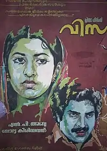 Visa is a 1983 Indian Malayalam-language comedy-drama film co-written and directed by Balu Kiriyath. It is based on the short story "Bombayil Oru Madhividhu" by G. Vivekanandan. The film stars Mammootty, Mohanlal, T. R. Omana, and Sathaar. The film has a musical score by Jithin Shyam. Visa was a commercial success at the box office. Mohanlal got a take off as a comedy actor for the first time through this film.[1][2][3][4]