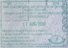 - "Immigration permission for non-EU/EEA & non-Swiss nationals". Department of Justice and Equality. 21 August 2017. Retrieved 2 April 2020.