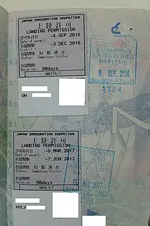 Due to the COVID-19 pandemic, Japan suspended the visa exemptions for most countries from March 2020, and later for all countries, and restored them on 11 October 2022.[101]