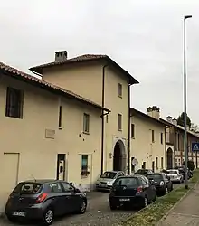 In 1325 the rich Fiamberti family from Pavia acquired numerous assets and funds in the area and, between 1325 and 1341, had the primitive castle built, with a tower and shelter. In the 1360s, Galeazzo II Visconti bought half of the castle from the Fiamberti family, with the relevant funds, while the remaining part of the complex was expropriated by the lord.[15] The complex was restored by Gian Galeazzo Visconti in 1384 and included in the large Visconti Park.[16] Filippo Maria Visconti established the position of captain of the Park, in charge of the custody and management of the ducal assets and placed his seat in the castle. In 1472 Galeazzo Maria Sforza had the building renovated and enlarged, which was used several times by the dukes as a seat of political representation, on the occasion of hunts and banquets organized within the park. Probably around 1491, Gian Galeazzo Sforza donated the castle to Galeazzo Sanseverino who had the residence renovated. During the battle of Pavia in 1525 the castle hosted the king of France Francis I and in the same battle Galeazzo Sanseverino died fighting in the French ranks.[17]