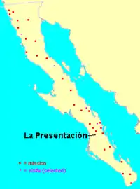 Location of Visita de la Presentación among the Spanish missions in Baja California