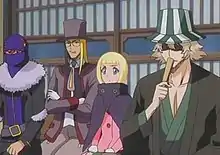The Bounts[21] (バウント, bounto) are a group of humans with special abilities. They are the main antagonists during the anime-exclusive Bount and Bount Assault on Soul Society arcs. The Bounts live eternally due to an accident during a scientific experiment earlier in the Soul Society, where they were created, and began to eat the souls of human beings to gain more power. They each have a unique weapon known as a Doll, a familiar which is its creator's power given physical form. Dolls are mostly self-sufficient creatures when released, although they tend to be used as weapons in various ways such as a large battle axe or a snake, as a sword and whip. Their leader Kariya, motivated by the destruction of himself and all connected to him, plans to invade the Soul Society along with the remaining Bounts to destroy it and themselves. However, with the exception of his friend Gō Koga, Kariya managed to have his forces wiped out by the Soul Reapers prior to himself being killed by Ichigo Kurosaki. IGN criticized the Bounts as being "lame bad guys," noting that the bittō (the Bounts’ mosquito-like creatures that collect souls) in particular were like "something straight out of a bad sci-fi movie," but admitted the Bounts were "decent plot devices" to develop the other characters.[22]